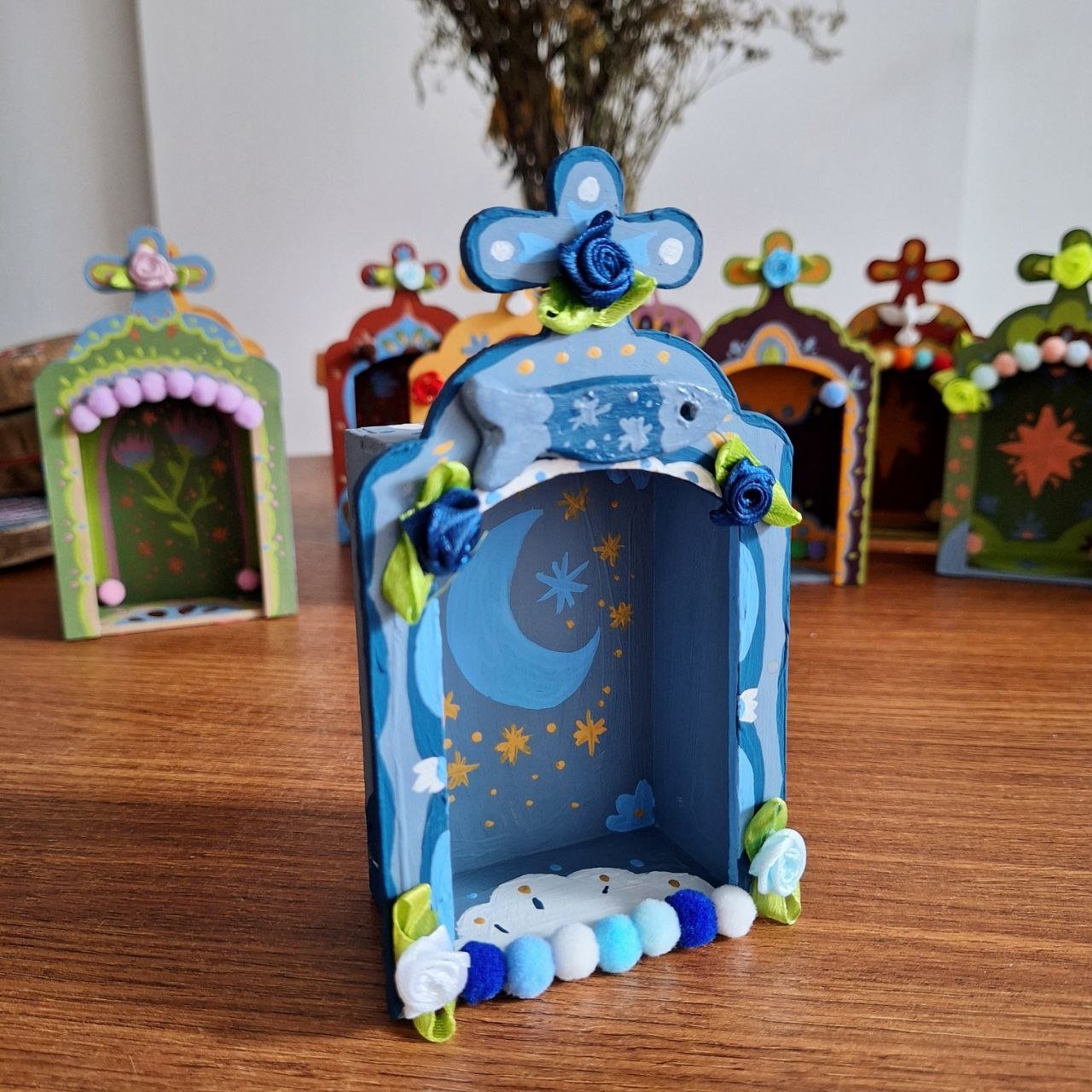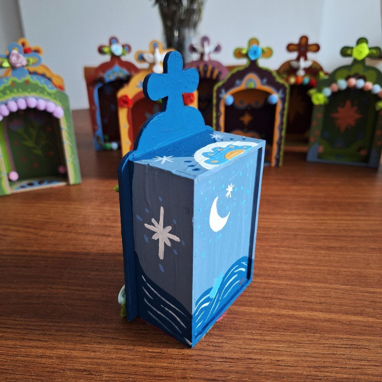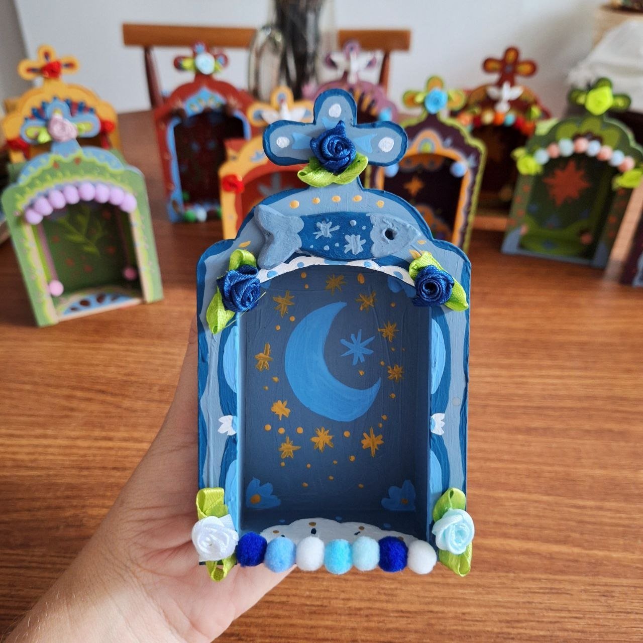 Oratório em MDF, pintado a mão e decorado artesanalmente